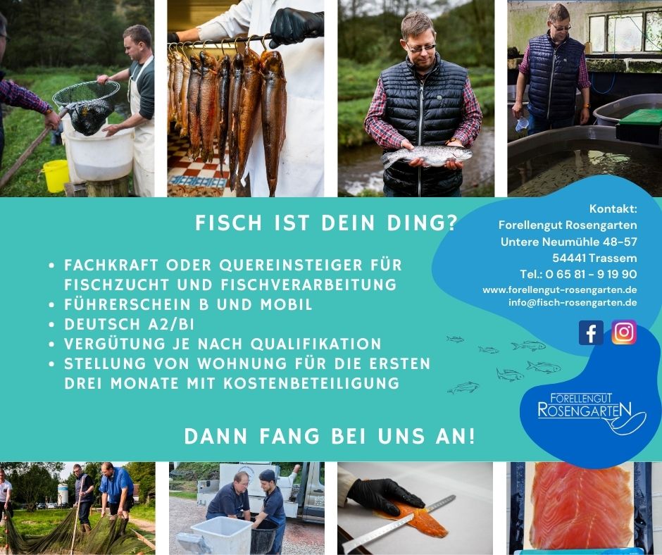 - Fachkraft oder QuereinsteigerIn für Fischzucht und Fischverarbeitung (m/w/d)